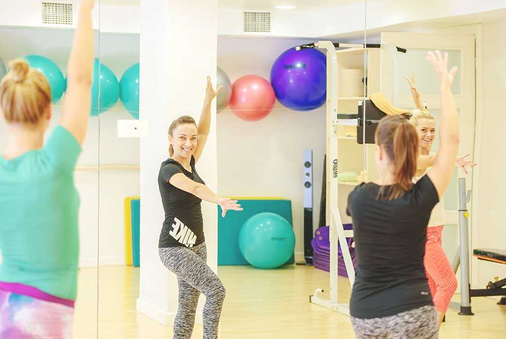 Naša prostrana sala za grupne vježbe može se koristiti za individualne vježbe ili za grupne aktivnosti. Opremljena platformama za step, prostirkama za jogu, loptama za fitness i ostalim sredstvima, ova sala je pogodna za različite vrste treninga.